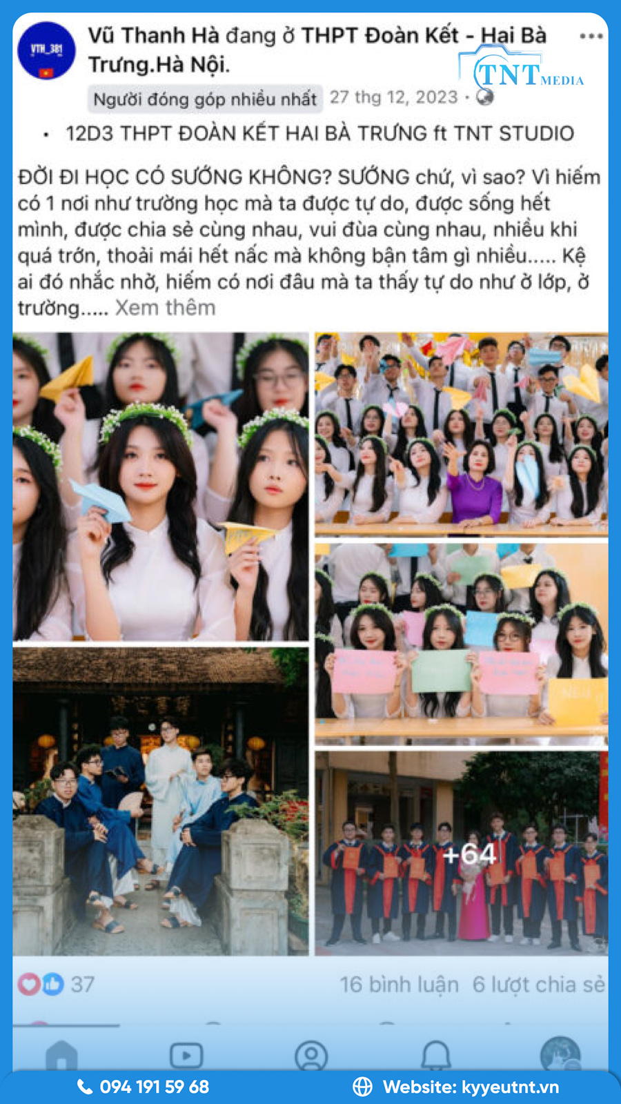 ” Cảm ơn TNT Studio đã đồng hành cùng lớp 12A3. Dù trời nắng như vậy nhưng mọi người vẫn cố gắng để chụp cho lớp những bức ảnh đẹp nhất Vui vẻ với nhau…Dù là mới quen nhưng TNT đem lại rất nhiều tiếng cười cho chúng em… Cảm ơn anh Thắng, anh Mạnh đã chụp cho bọn em những bức ảnh tuyệt vời Cảm ơn anh Nam đã quay những video rất đẹp. Cảm ơn chị Ánh đã tấu hài cho bọn em cười Yêu tất cả mọi người trong TNT”