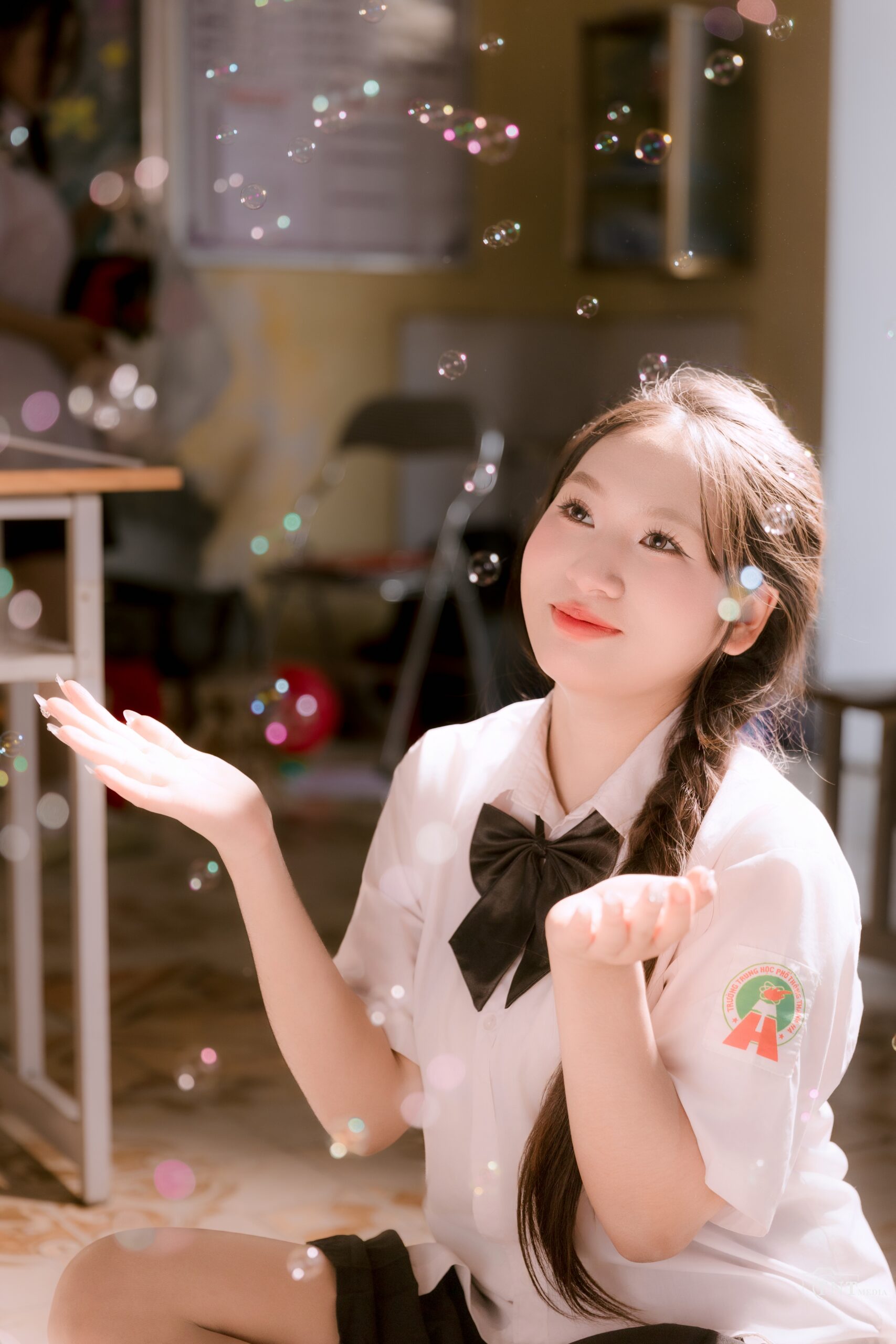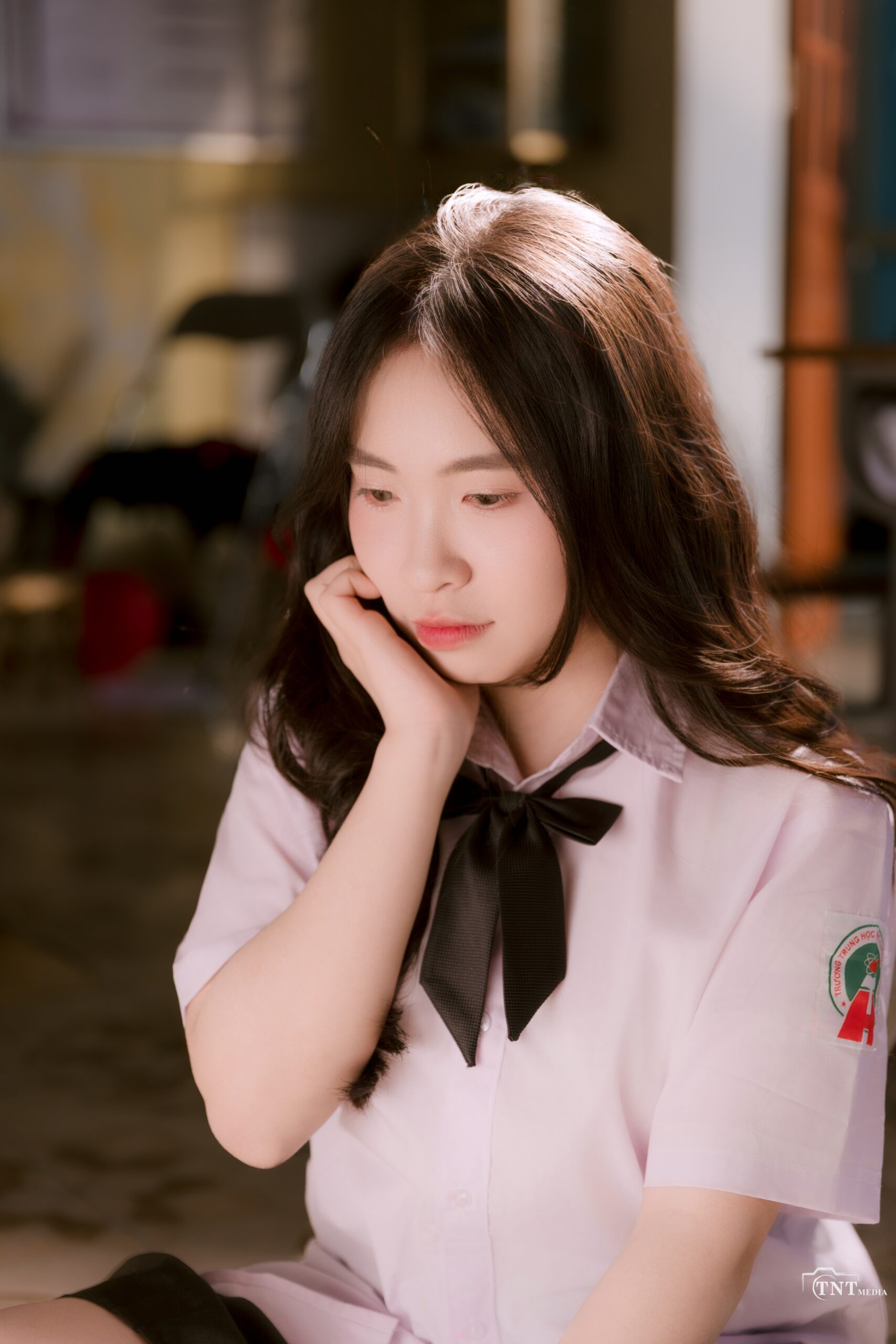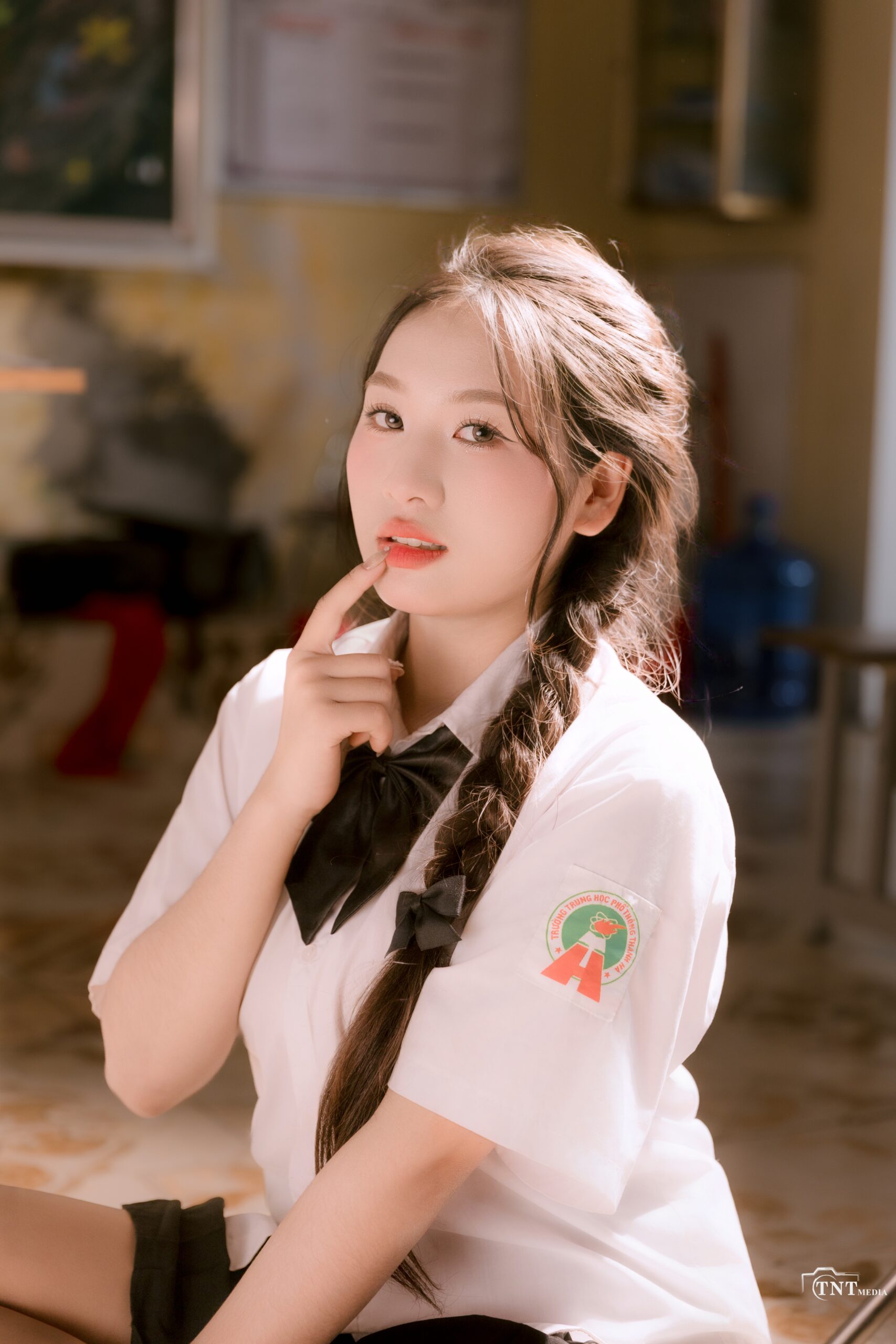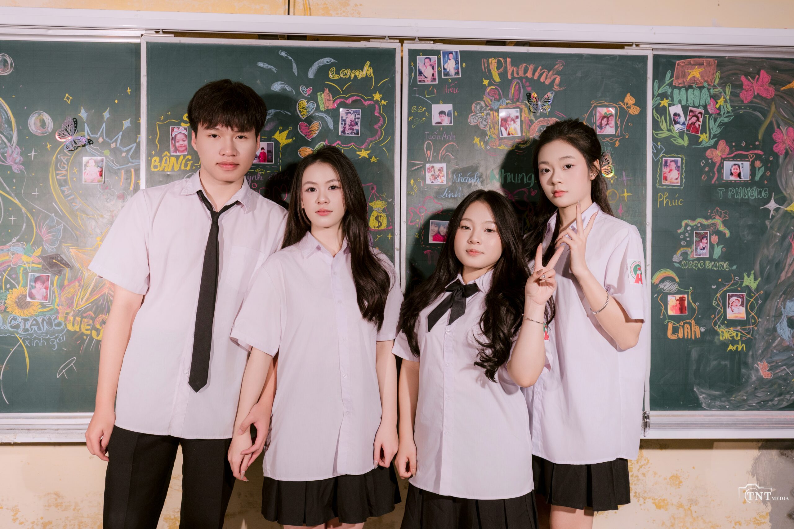 Tạm biệt bảng đen phấn trắng, chúng tôi gửi lại tuổi trẻ của mình trong những thước phim mang phong cách “Thanh xuân đen” đầy hoài niệm. Giữa không gian mang chút màu sắc trầm mặc, bộ đồng phục của THPT Thanh Hà hiện lên như những nốt trầm xao xuyến trong một bản nhạc giao hưởng.